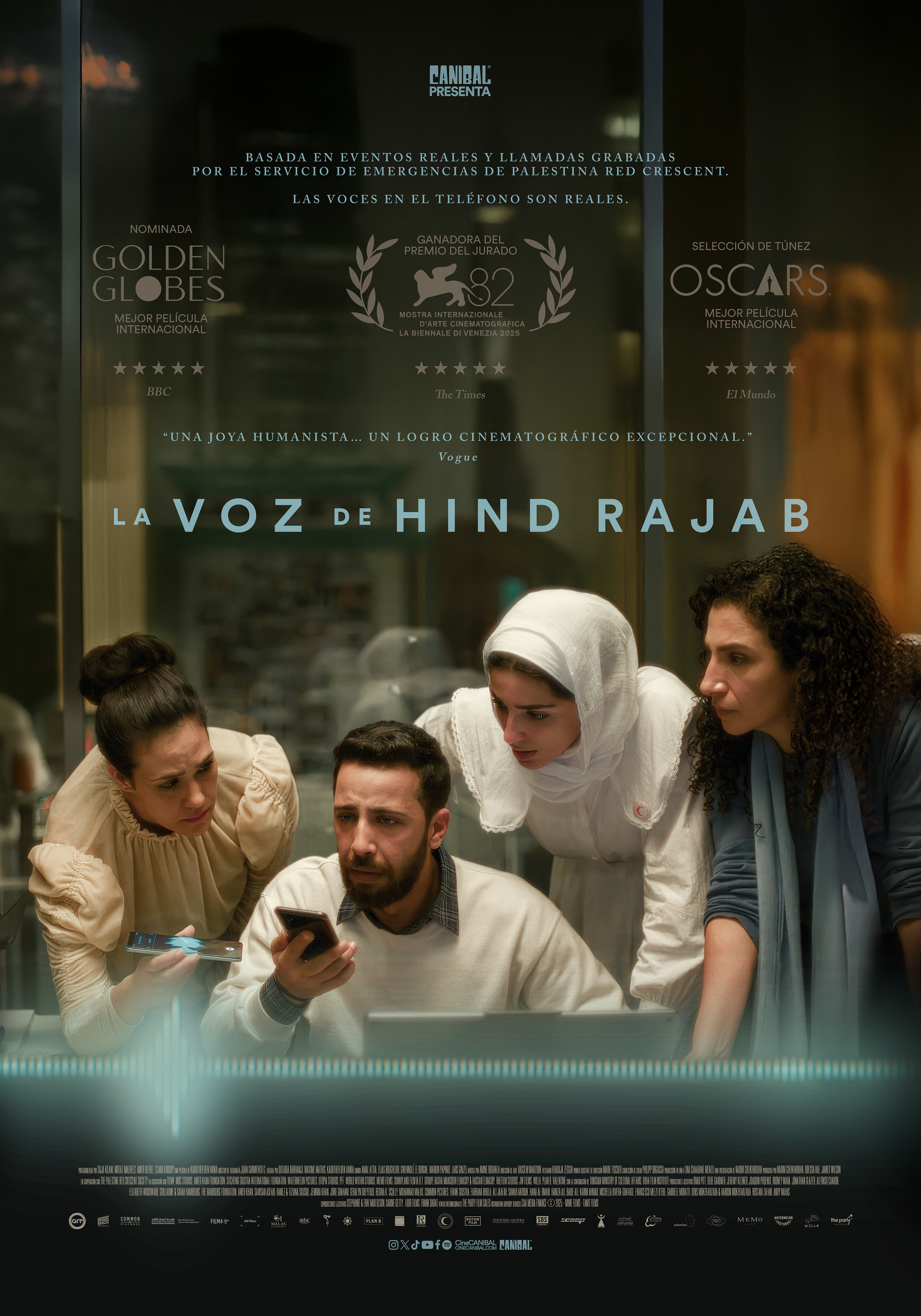 Filmada por entero en una sola locación (la estación de los rescatistas y sus oficinas) y con histriones profesionales quienes viajan emocionalmente de la posibilidad de éxito a la desesperanza, la cinta contiene un elemento clave para no dejar duda de la verosimilitud de su relato. Se trata de la grabación de las llamadas de la propia Hind Rajab desde un teléfono móvil hacia los rescatistas de la Media Luna Roja. Esa voz infantil alcanza resonancias universales las cuales van más allá del conflicto bélico donde tiene lugar la historia. Es una niña pequeña quien, como millones de infantes, experimenta una brutalidad que no comprende. Una voz la cual conmueve a un puñado de seres humanos quienes pondrán lo mejor de sí para rescatarla, atrapados por una burocracia criminal. En una era en donde el mensaje de texto es suplente de la llamada telefónica para escuchar la otra voz en el auricular, La voz de Hind Rajab demuestra el poder de la voz humana y su poderosa capacidad para conmover.