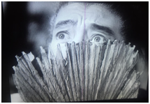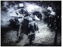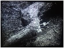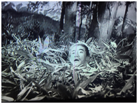 En el plano siguiente se puede observar la clara jerarquía de poder al ver cómo están colocados Benkei y Yoshitsune en un plano picado (3.1) . Se le pide al guía pasar el equipaje para disfrazar de manera diferente a Yoshitsune y él lo hace aterrorizado. Al ver lo que está sucediendo el guía se esconde por temor a que le pase algo y se vuelve a plantear su semejanza con una presa observando al depredador (3.2 – 3.2.1).