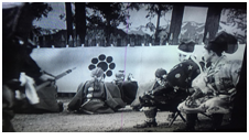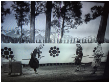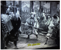 Pasamos a un plano general donde se ve que Yoshitsune y sus hombres van a salir por fin de la barrera y de último momento el mensajero del emperador decide que detengan Yoshitsune que va disfrazado de guía (8.2), Benkei les demuestra que no es Yoshitsune golpeándolo, ante la insistencia del mensajero, todos los “monjes” entran en guardia y hacen retroceder al mensajero junto con los guardias, regresando al lenguaje metafórico, están haciendo retroceder al tigre devuelta a su guarida (8.3), con el siguiente plano, nos dan a entender que con esa acción ellos ya han salido de ese peligro que representaba el mensajero, ya que está fuera de la barrera (8.4), confirmando esto con la aprobación del administrado para dejar la barrera.
