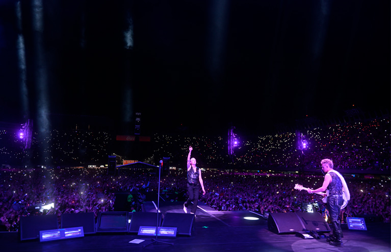 Incluso en el momento más emotivo, aquel donde el homenaje a su amigo caído, Andy Fletcher, es captado con el alma mientras Gahan mira los carteles y hace la señal de saludo inmortal a su ex compañero de banda, muestra justo ese lazo tan bello donde la celebración de la vida después de la muerte se exalta al ritmo de World in my Eyes, donde la parte del estribillo resuena como un recordatorio hermoso de lo efímero: “That's all there is /Nothing more than you can feel now / That's all there is” (No existe nada más, no hay más que puedas sentir, eso es todo lo que hay).
